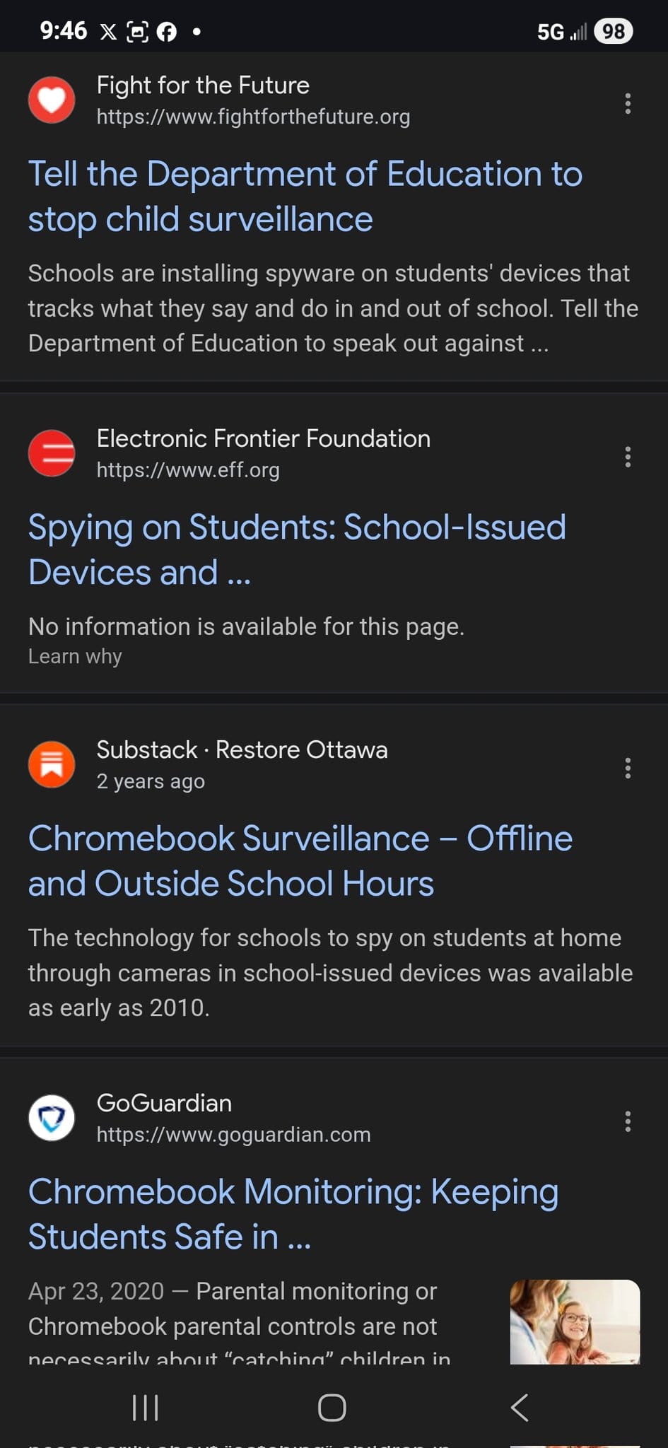 The EFF has also taken the issue to federal court. In a November 2025 amicus brief in Merrill v. Marana Unified School District, the organization argued that schools cannot claim that a student's use of a school-issued Chromebook makes all their speech — even speech conducted at home, off-hours, in a deleted email draft — automatically subject to school authority and punishment. The brief argued that such a rule would "incentivize public schools to continue eroding student privacy by subjecting them to near constant digital surveillance," and would disproportionately harm lower-income students who have no alternative device to use.